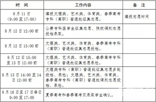 山东省2019年普通高校招生录取工作进程表