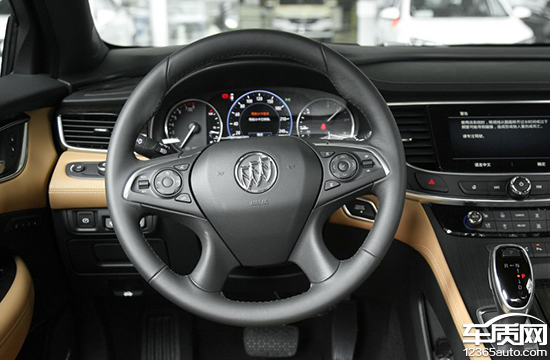新车方向盘样式未作出调整,粗细适中且在三、九点位预留的凹槽,握感出色。四辐式造型也许会有些老气,但对于君越这种商务气息浓重的大尺寸轿车而言,四辐式方向盘很符合其气质,较大的尺寸也能给予驾驶者开大车的感觉。