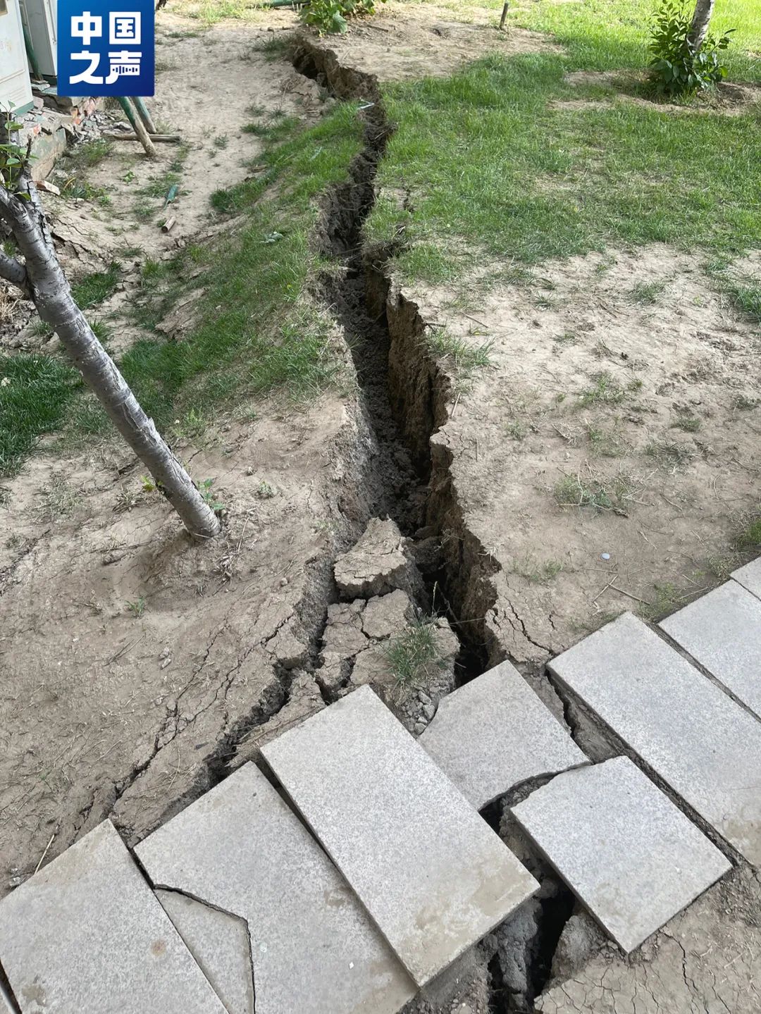 小区内多栋楼受损 有草地裂开 口子