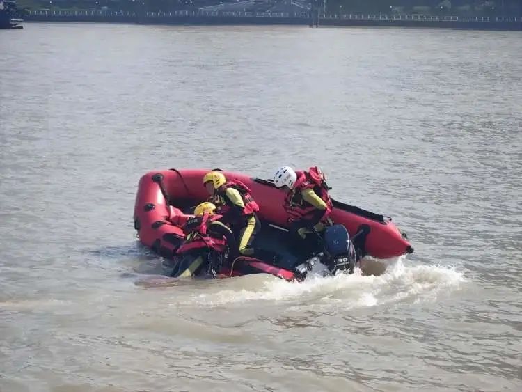 10月20日下午2时许,上海市消防救援总队水上支队水一站9名消防救援人员正在南浦大桥执勤点开展水域救援器材使用训练时,突然听到有保安人员大喊“有人落水了”。