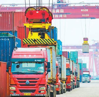 山东青岛港,外贸集装箱堆场。 俞方平摄(影像中国)