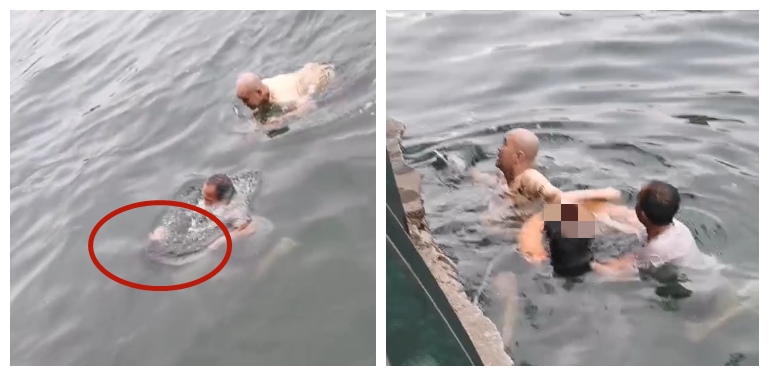 从王女士拍摄的视频画面可以看到,年轻女子落水后,一名热心男子跳下柳江河潜入水底救人。之后又有一名热心男子跃入水中,潜入水底救人,没多久就把女子从水底拉上水面。其间,有市民从岸上投掷救生圈,两名热心男子把救生圈套在落水女子身上,之后合力将女子拉上岸边。